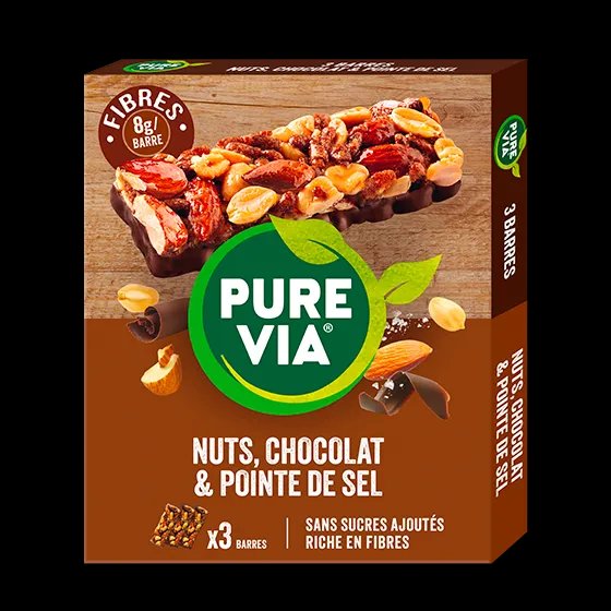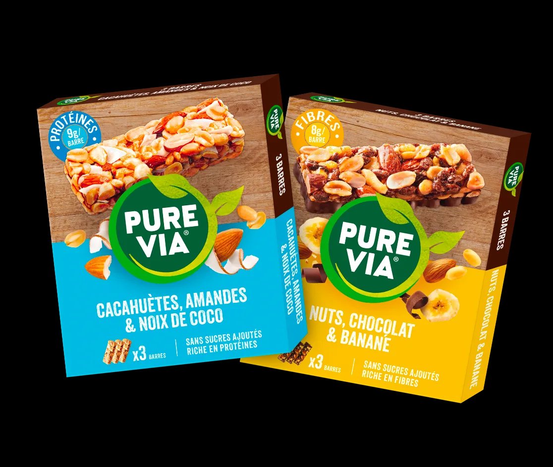 Les Barres de Céréales Pure Via® sans sucres ajoutés sont élaborées avec des ingrédients de qualité pour un encas 100% plaisir, à emporter partout !